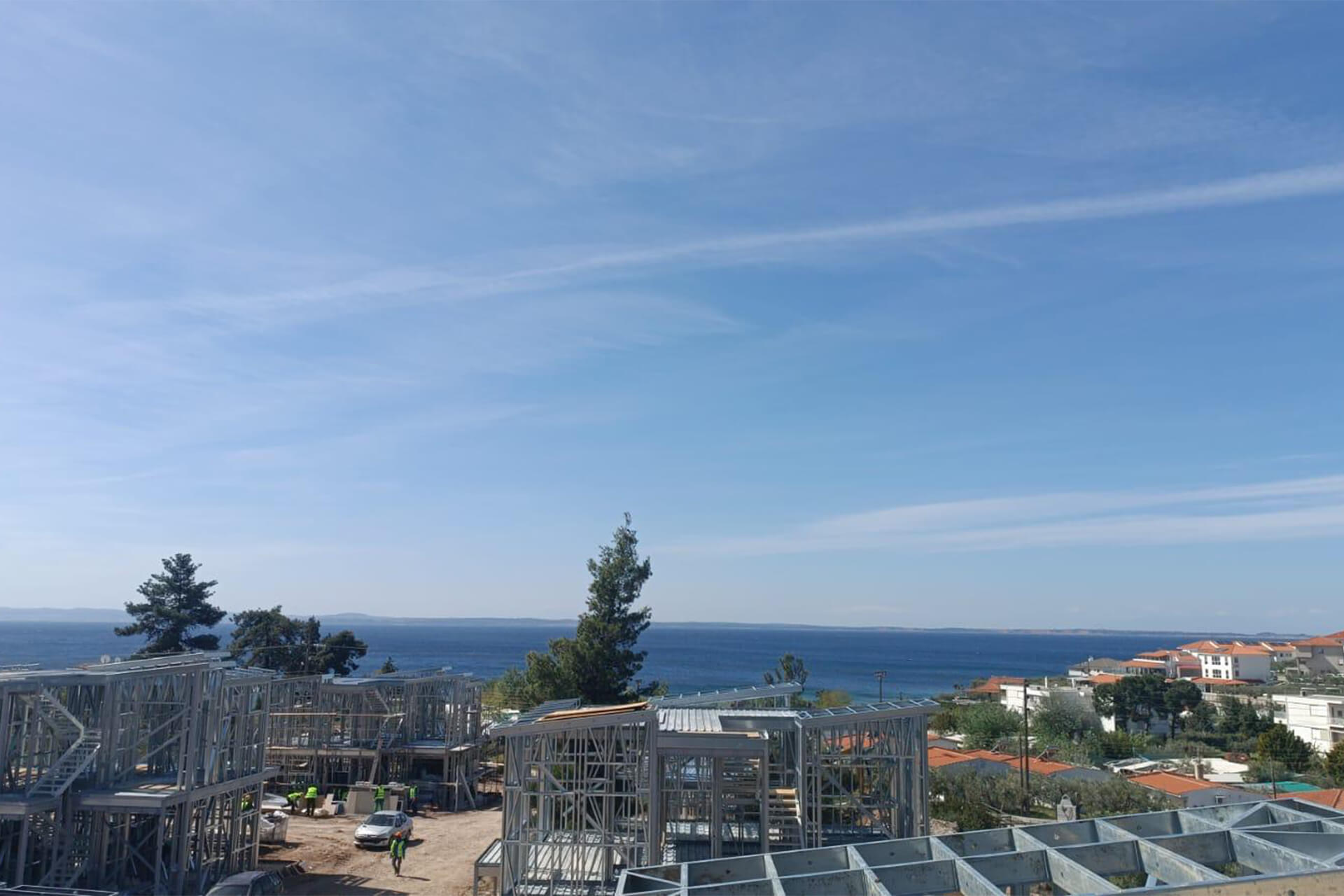 On the enchanting shores of Greece, where the sea meets the sky, a new holiday village villa project has come to life. Built with the collaboration of Prefabrik Yapı A.Ş.’s light steel construction brand Steelin and Hekim Yapı A.Ş.’s innovative brand HekimBoard, these villas are more than just structures; they are symbols of peace and new beginnings.